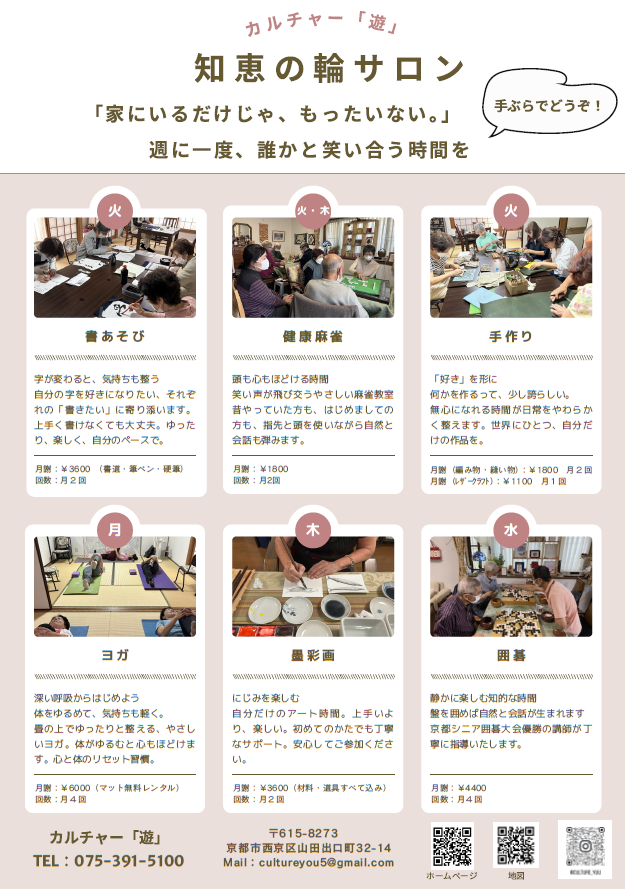 サロンのスタッフは各々、介護支援員、介護福祉士、介護職員初任者研修修了者です。
